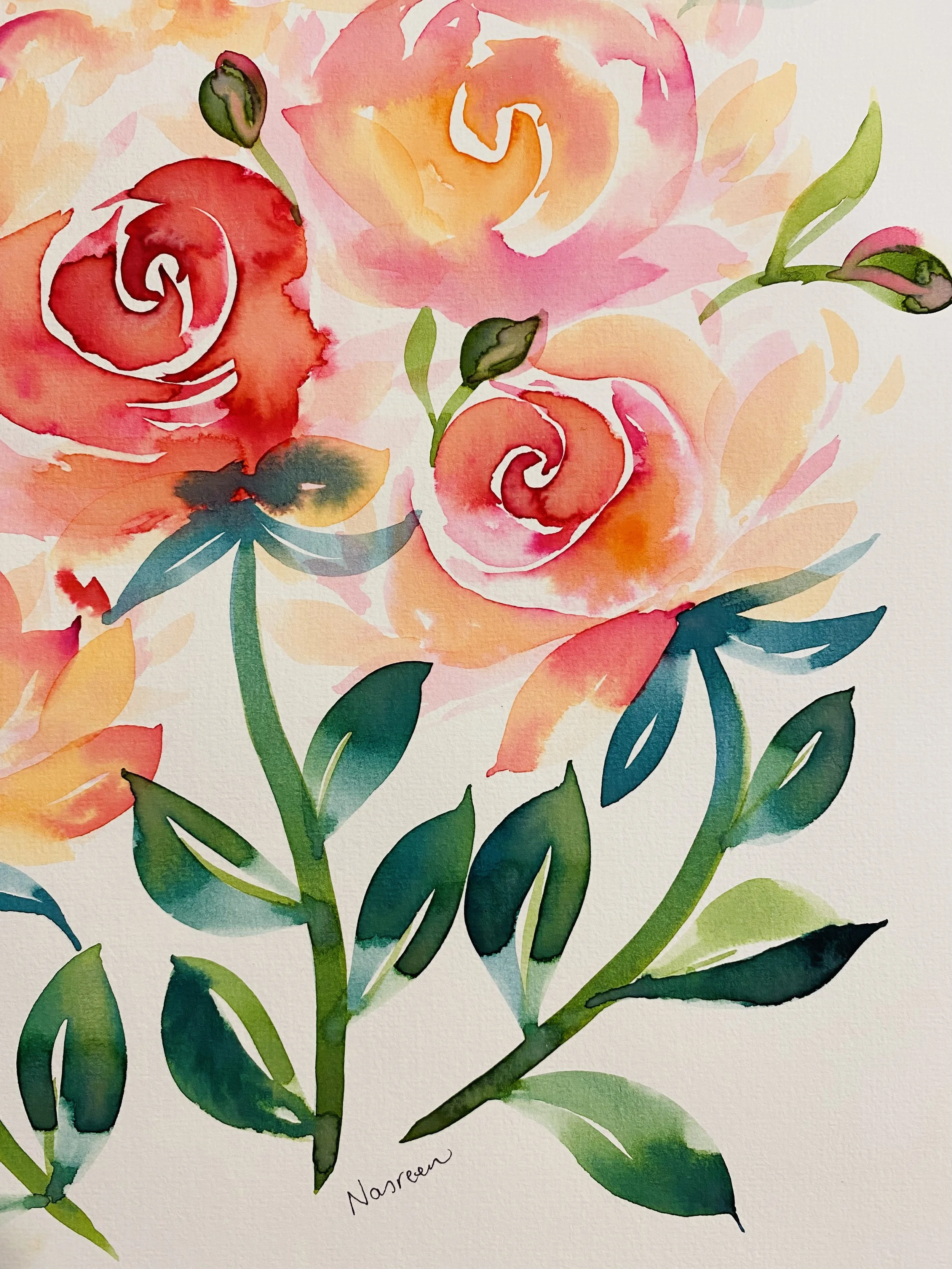 Hi! I’m Nasreen (Nas for short), a self taught watercolour artist, qualified surface pattern designer, and educator based in Brisbane.
